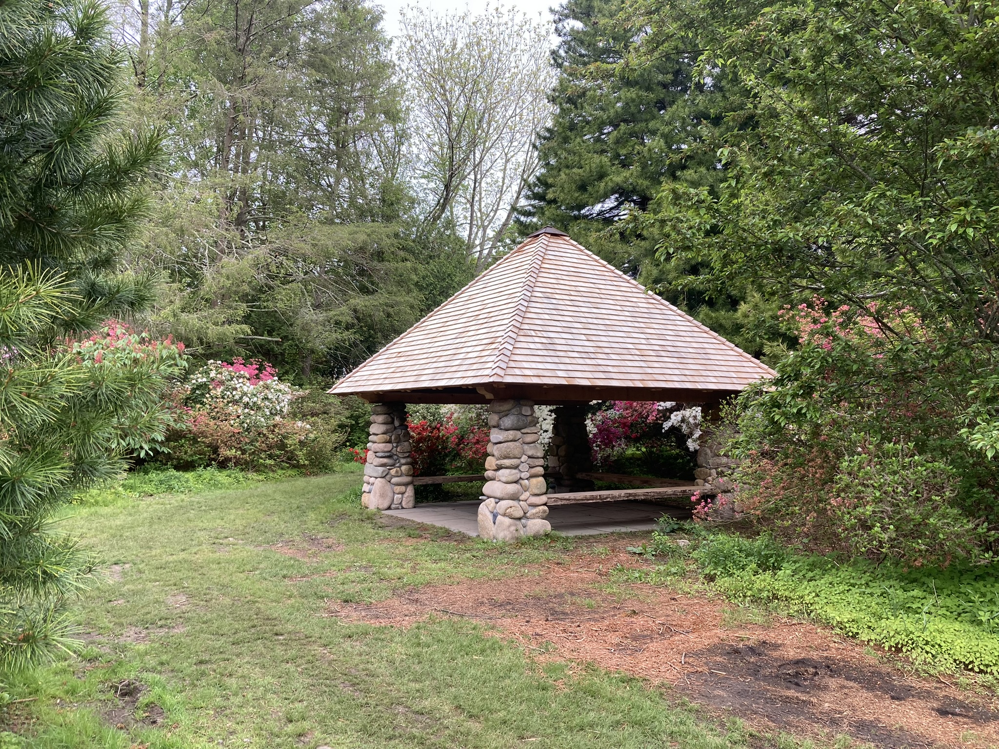 Sometime around his 100th birthday, Tony expressed an interest in having a tea house at the Gardens. After more than 25 years, I was delighted to have the opportunity to take on another project at Kinney’s. Although it may be better described as a gazebo, I prefer ‘tea house’ in commemoration of the Azalea Teas that Mr. Kinney, and then Tony and Betty Faella, hosted for decades on the Saturday of URI graduation weekend. If the weather cooperated, the azaleas would be in peak bloom at that time, making for a magical setting.