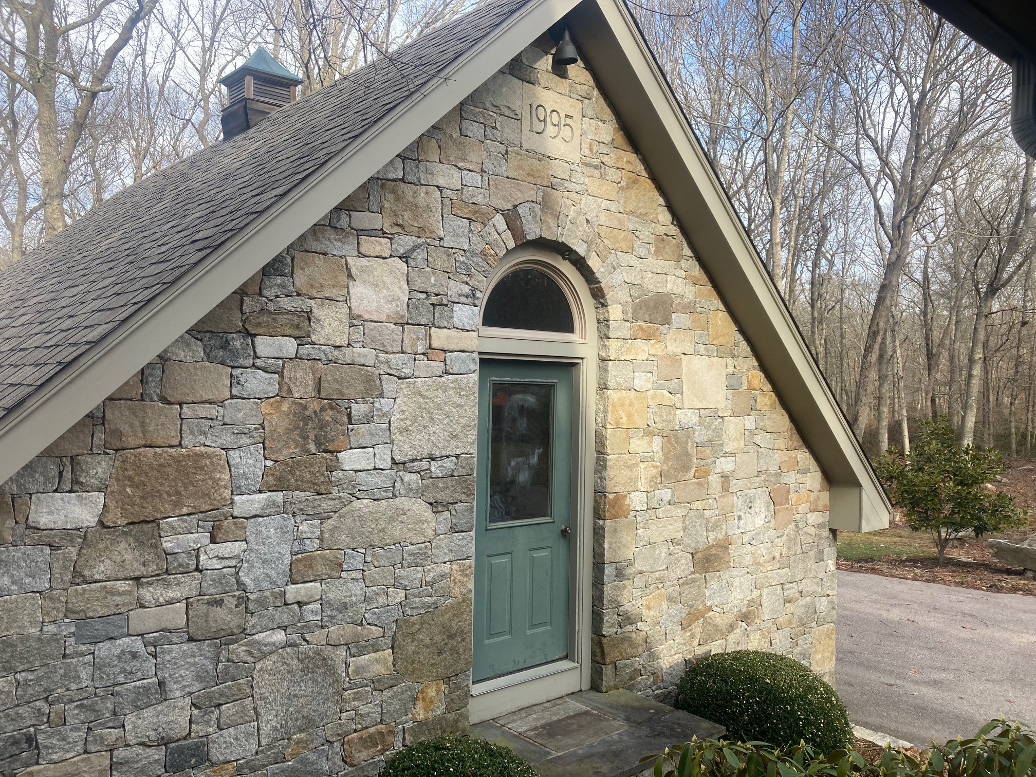 I broke my number one rule in landscaping Stewart Way: always know what the finished product will be before sticking a shovel in the ground.  I had my reasons, I never would have planned a project at our home that would take hundreds of hours of my own time to complete.  Originally the plan was simply to clad the garage with stone and build retaining walls and a patio at the walkout basement.  That seemed ambitious enough at the time.  After a few years and the addition of several minor landscape improvements, I had the urge and the additional accumulated materials to build a second garage for my equipment, this time with stone and brick.  Once that project was completed, it only made sense to connect the structures with walls to complete the enclosure of the back yard.